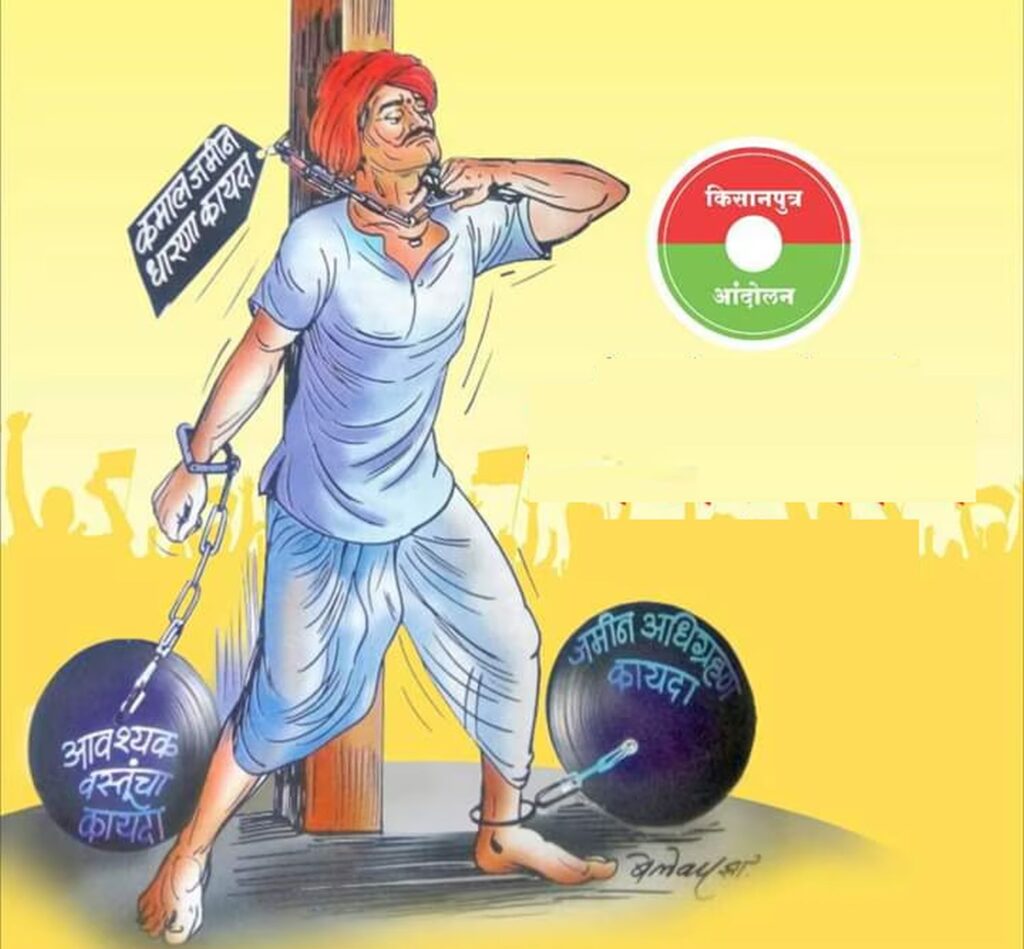 वर्गवादी आणि वर्णवादी (विरोधीसुद्धा) शेतकऱ्यांचे चित्र कसे काढतात? तुम्ही पाहिले असेल, आकाशाकडे डोळे लावून बसलेला शेतकरी किंवा गळफास लटकलेला आहे व खिन्न उदास चेहरा घेऊन शेतकरी उभा आहे. परफेक्ट याचक! शेतकरी साखळदंडांनी जखडलेला आहे. असे चित्र तुम्ही पाहिले आहे का? असे चित्र पहिल्यांदा किसानपुत्र आंदोलनाने काढले. प्रचारात आणले. कायद्यांच्या बेड्यांनी तो बांधला आहे, कमाल शेतजमीन धारणा, आवश्यक वस्तू, जमीन अधिग्रहण हे कायदे शेतकऱ्यांना गुलाम करणारे आहेत. अशी भूमिका मांडली. ही भूमिका ना वर्गवाद्यांना मान्य आहे, ना वर्णवाद्यांना मान्य आहे.