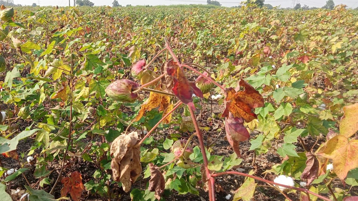 मुख्य, दुय्यम व सुक्ष्म अन्नद्रव्यांसाेबतच झाडांच्या निकाेप वाढीसाठी स्वच्छ सूर्यप्रकाश, काेरडे हवामान, पुरेसे पाणी व मातीची वाफसा स्थिती अत्यंत अवश्यक असते. यातील काेणत्याही अन्नद्रव्यांची कमतरता निर्माण झाल्यास किंवा हवामानात प्रतिकूल बदल झाल्यास झाडे कमकुवत हाेतात आणि त्याचे परिणाम फूल व फलधारणेसाेबत कापसाच्या उत्पादनावर हाेताे. झाडांमध्ये मॅग्नेशियमची कमतरता निर्माण झाली आणि त्याच काळात कडाक्याच्या थंडीमुळे मातीचे तापमान खालावले, तर झाडांची पाने लालसर हाेऊन गळतात. कपाशीचे संपूर्ण शेत लाल दिसत असल्याने शेतकऱ्यांनी याचे ‘लाल्या’ असे नामकरण केले आहे.