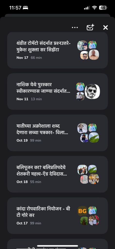 या डिजिटल मंचावर होणाऱ्या चर्चांचे विषय अत्यंत विस्तृत असतात. विविध पिकांचे तंत्रज्ञान, रोग-किड नियंत्रण, हवामानाचा अंदाज, बाजारभाव, बियाणे-खते उपलब्धता तसेच नव्या तंत्रज्ञानांची ओळख, ए-आय, ड्रोन, नवीन बायोफर्टिलायझर्स, स्मार्ट इरिगेशन असे सगळे विषय तज्ज्ञ मार्गदर्शक आणि शेतकरी बांधव यांच्या चर्चेतून येथे समजावून घेता येते. विविध वैज्ञानिक, कृषितज्ज्ञ, कृषी अधिकारी, आणि प्रगतशील शेतकरी आपले ज्ञान मोकळेपणाने देतात. ज्ञान ही संपत्ती आहे आणि या समूहाने ती अगदी सोप्या आणि साध्या स्वरूपात वापरली आहे. काेट्यवधी रुपये खर्च करून शासकीय यंत्रणांना जे काम करता आले नाही, ते या समूहाने कोणत्याही आर्थिक मदतीशिवाय करून दाखविले आहे.