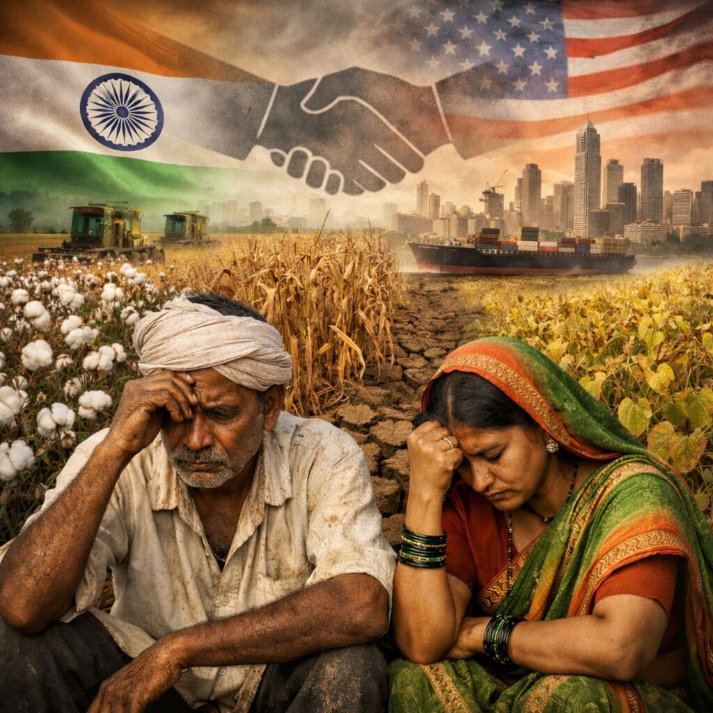 Global trade strategies : महाराष्ट्राच्या काळपट मातीचं आणि तिथल्या घामाचं नातं हे केवळ पोटापाण्यापुरतं मर्यादित नाही, तर ते या राज्याच्या अस्मितेचा आणि अर्थव्यवस्थेचा मुख्य आधारस्तंभ आहे. विदर्भ, मराठवाडा आणि उत्तर महाराष्ट्राच्या शिवारात डोलणारा कापूस, सोयाबीन आणि मका ही पिके केवळ उत्पादने नसून, ती ग्रामीण महाराष्ट्राच्या प्रगतीची स्वप्ने आहेत. मात्र, आज याच स्वप्नांवर अमेरिका-भारत व्यापार कराराच्या रूपाने एक धूसर सावली पडताना दिसत आहे. हे संकट केवळ कागदोपत्री मर्यादित नसून, त्याचे थेट परिणाम महाराष्ट्राच्या खेड्यापाड्यातील घराघरांत जाणवू लागले आहेत. एकेकाळी ज्या पिकांनी ग्रामीण अर्थव्यवस्थेत चैतन्य आणले, बाजारपेठांमध्ये आर्थिक उलाढाल वाढवली, आज तीच पिके शेतकऱ्यांच्या गळ्यातील फास ठरतात की काय, अशी भीती निर्माण झाली आहे. या भीतीचे मूळ हे केवळ निसर्गाच्या लहरीपणात नाही, तर ते जागतिक (Global) स्तरावर आखल्या जाणाऱ्या व्यापार (trade) धोरणांमध्ये (strategies) दडलेले आहे.